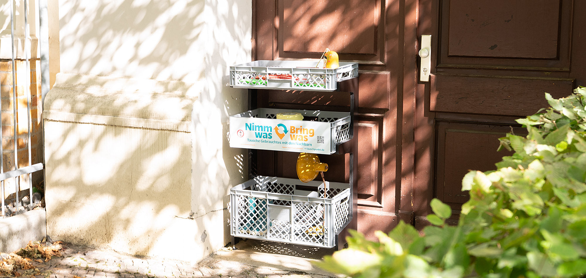Ein Regal zum Tauschen von Gebrauchtem, nachhaltig vor der Haustür